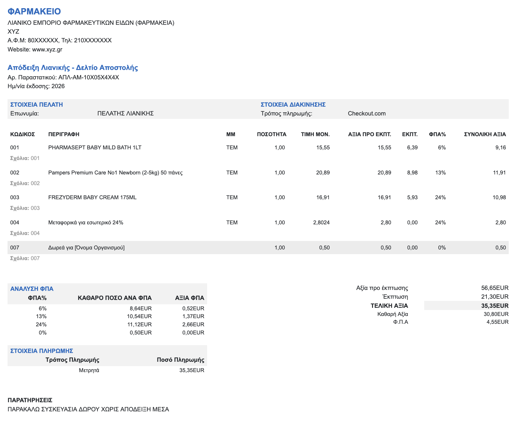 • Να εμφανίζεται ως ξεχωριστή γραμμή στην απόδειξη